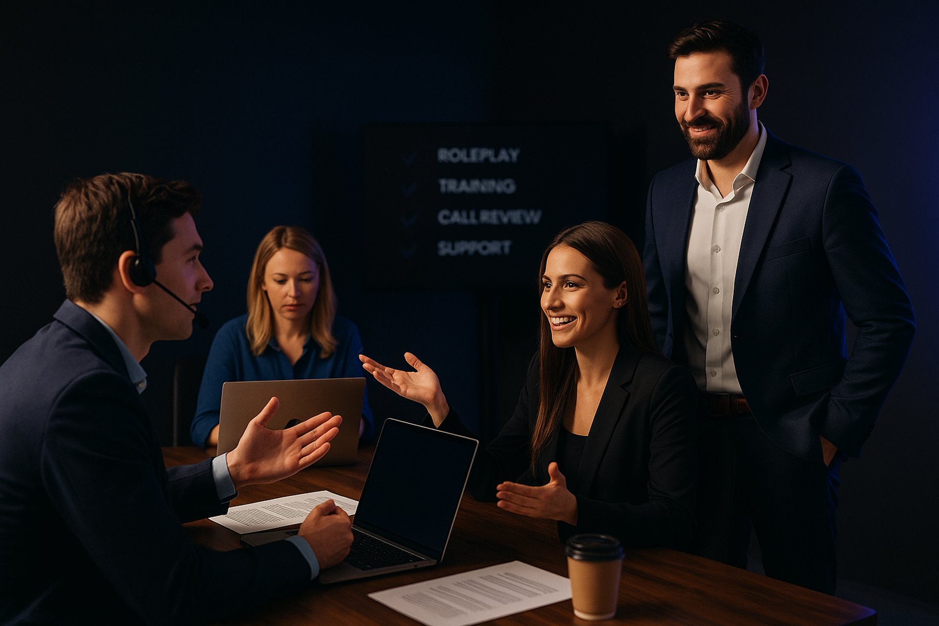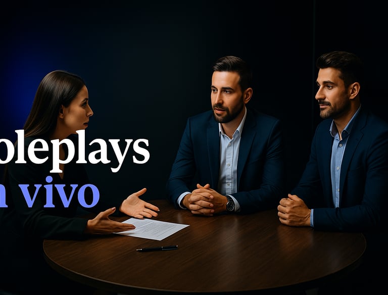 Donde tu equipo entrena situaciones de venta reales con feedback inmediato.